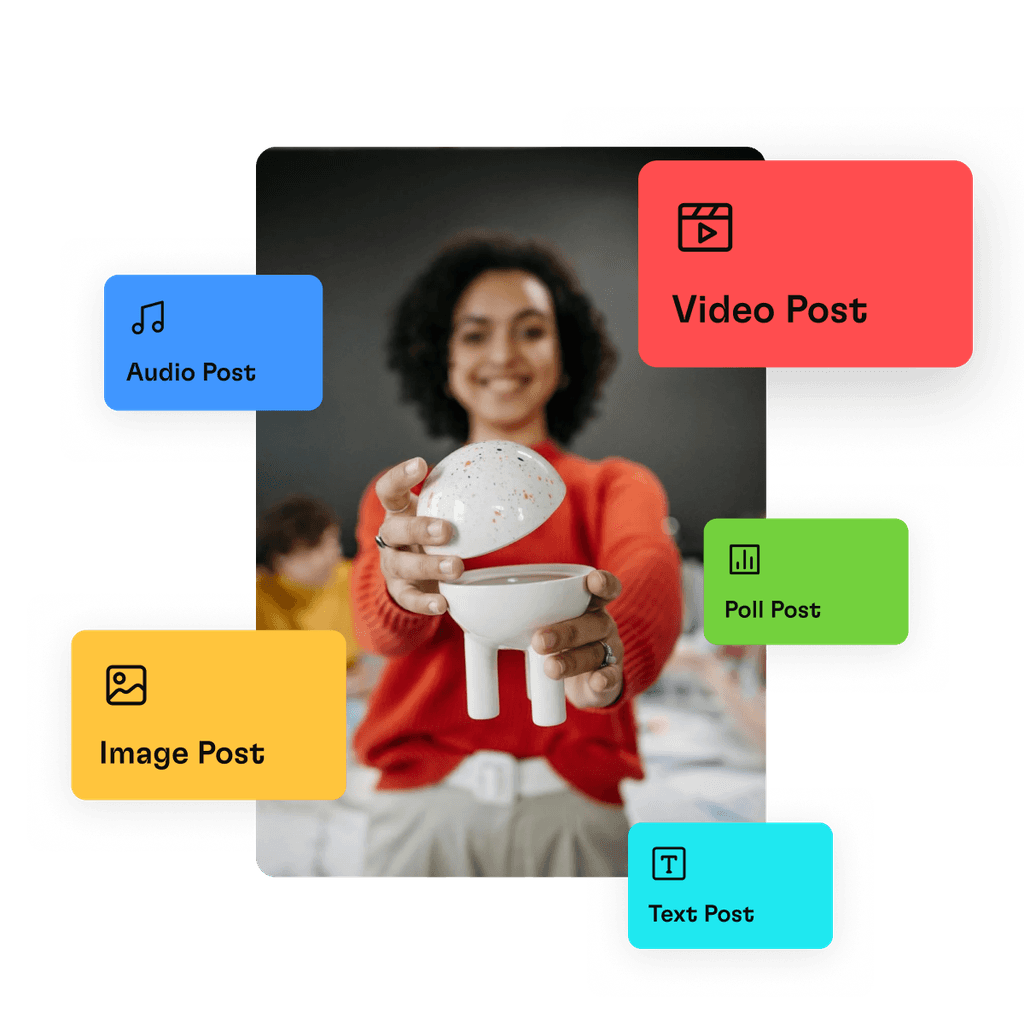 Our feature is designed to help you promote your brand with a variety of engaging content: texts, photos, videos or audios. Make your fans feel valued with exclusive materials for each membership tier, and also foster deeper interactions through polls and comments. Plus, when the moment calls for it, choose to share content with all members or the public to spread your message further.